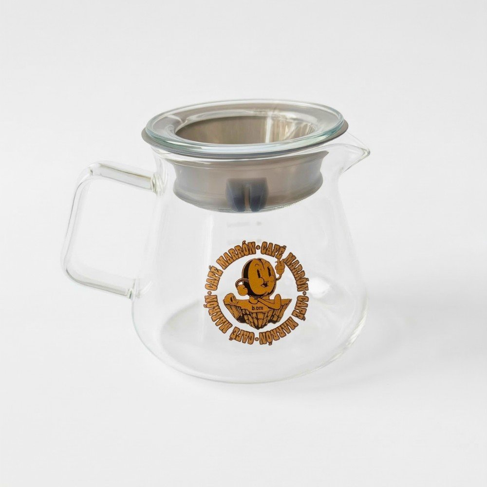 Jarra de vidrio transparente que deja ver el café tal cual es, desde la primera gota hasta el último sorbo. Su forma amplia permite que el café respire y se equilibre, suavizando sabores mientras mantiene el calor el tiempo justo. La tapa superior aporta practicidad sin romper el ritual, ayudando a conservar la temperatura y proteger el contenido. Simple, funcional y de esas piezas que terminan volviéndose esenciales.