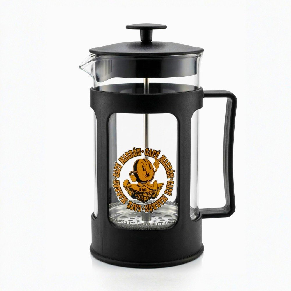 Cafetera prensa francesa con base de plástico y recipiente de vidrio templado resistente al calor. No requiere electricidad. Tiempo de preparación: 5 a 10 minutos. Se recomienda usar molienda media, ya que una molienda adecuada mejora el sabor y la extracción de tu café.