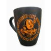 Taza de cerámica negra de 300 ml con plato, acabado mate, resistente al calor y apta para microondas. Medidas: 16 largo x 16 ancho x 9 alto cm.