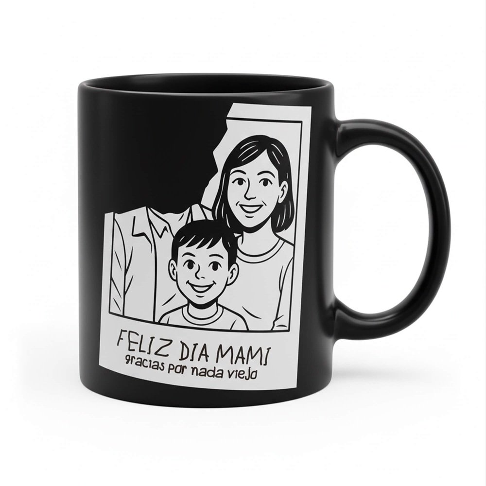 Taza de cerámica negra sublimada con un diseño exclusivo creado para celebrar el Día de la Madre. Elegante y con mucha personalidad, cuenta con una capacidad de 350 ml, ideal para que mamá disfrute de su café Marrón favorito todos los días. Un detalle perfecto para regalar y hacerla sentir especial en su día.